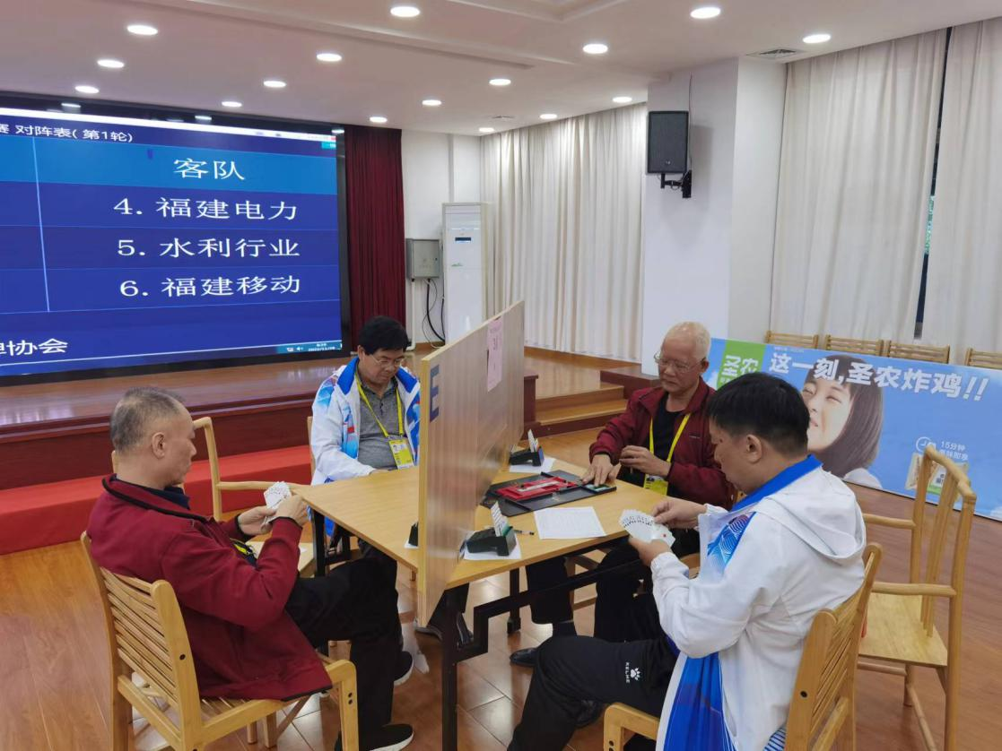 由福鹽集團(tuán)組建的男子橋牌隊(duì)代表福建輕紡,參加由福建交通運(yùn)輸行業(yè)、福建水利行業(yè)、福建稅務(wù)系統(tǒng)、福建輕紡、福建移動、福建國網(wǎng)電力等7支代表隊(duì)35名運(yùn)動員組成的行業(yè)部橋牌比賽。