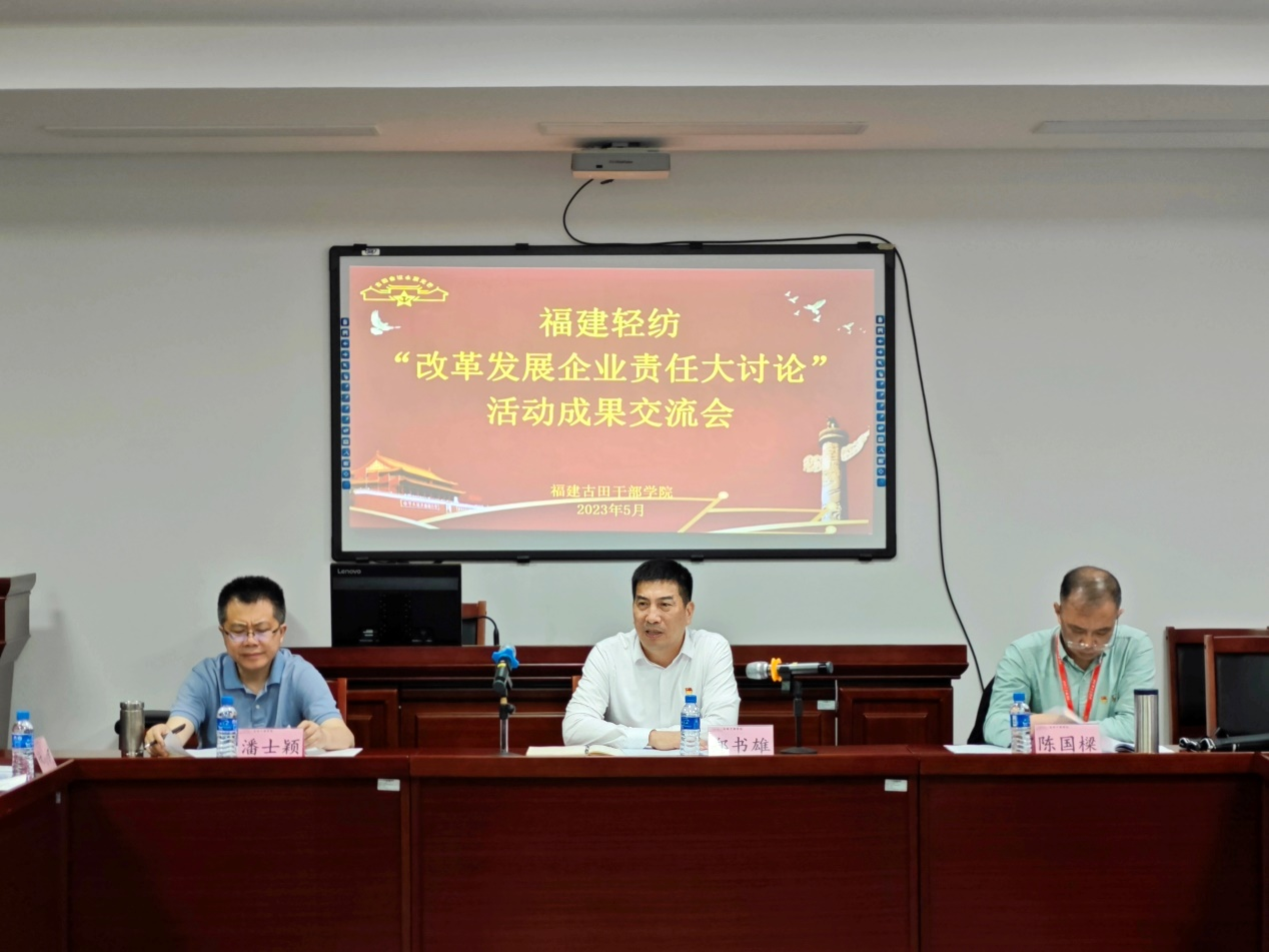 5月6日,福建輕紡在古田干部學(xué)院召開“改革發(fā)展企業(yè)責(zé)任”大討論活動成果交流會。公司黨委副書記、副董事長、總經(jīng)理鄭書雄出席會議并講話。公司領(lǐng)導(dǎo)陳國樑、潘士穎出席會議。各權(quán)屬單位負(fù)責(zé)人圍繞“福建輕紡如何在建設(shè)新福建的大局中謀發(fā)展,如何在逐夢偉大復(fù)興擔(dān)責(zé)任”這一主題,聚焦改革發(fā)展“五個問題”、思想作風(fēng)“五個破除”踴躍談思考、提舉措,著力把大討論凝聚的發(fā)展共識、明確的發(fā)展思路、形成的發(fā)展舉措轉(zhuǎn)化為推進福建輕紡高質(zhì)量發(fā)展的“六個新”成效。