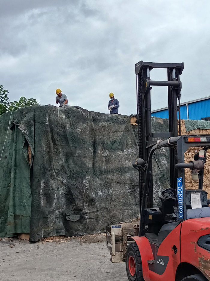 青山紙業(yè)對室外廢紙堆加固防雨篷布