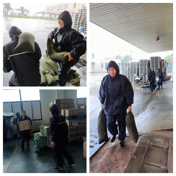 (圖為晶秀輕化黨支部帶領(lǐng)突擊隊(duì)準(zhǔn)備防御第5號臺風(fēng)“杜蘇芮”物資等)