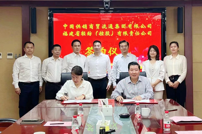 為進(jìn)一步加強(qiáng)供應(yīng)鏈體系建設(shè),提升產(chǎn)業(yè)布局和業(yè)務(wù)規(guī)模,9月25日,福建省輕紡(控股)有限責(zé)任公司與中國供銷商貿(mào)流通集團(tuán)有限公司在北京簽署戰(zhàn)略合作協(xié)議,正式建立戰(zhàn)略合作伙伴關(guān)系。福建輕紡黨委副書記、副董事長、總經(jīng)理鄭書雄,中國供銷商貿(mào)集團(tuán)黨委書記、董事長朱延?xùn)|出席并見證簽約。福建輕紡黨委委員、總會計師鄭劍軍,中國供銷商貿(mào)集團(tuán)副總經(jīng)理各自代表雙方簽字。