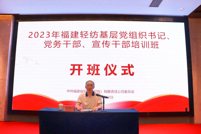 為進(jìn)一步深入學(xué)習(xí)領(lǐng)會(huì)習(xí)近平總書(shū)記關(guān)于黨的建設(shè)的重要思想,貫徹落實(shí)全國(guó)組織工作會(huì)議和全國(guó)宣傳思想文化工作會(huì)議精神,提升福建輕紡系統(tǒng)黨務(wù)工作者的政治理論水平和業(yè)務(wù)工作能力,10月11日,福建輕紡2023年基層黨組織書(shū)記、黨務(wù)干部、宣傳干部培訓(xùn)班正式開(kāi)班。公司黨委委員、副總經(jīng)理陳國(guó)樑主持開(kāi)班式并作動(dòng)員講話。各權(quán)屬企業(yè)黨組織書(shū)記、黨務(wù)干部、宣傳干部共96人參加本次培訓(xùn)。