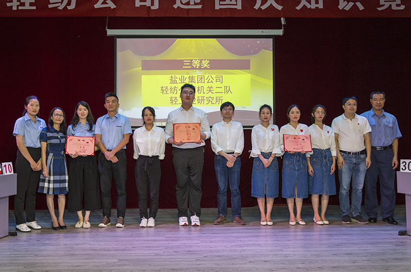 此次活動(dòng)采取團(tuán)體賽方式進(jìn)行,分為必答題、搶答題、風(fēng)險(xiǎn)題等多種類(lèi)型,共有來(lái)自輕紡系統(tǒng)的6支隊(duì)伍參與。比賽過(guò)程精彩激烈,各支隊(duì)伍不相上下、你追我趕,現(xiàn)場(chǎng)觀眾也充滿熱情地為選手們加油。最終,根據(jù)成績(jī)排名,青山紙業(yè)一隊(duì)榮獲一等獎(jiǎng),青山紙業(yè)三隊(duì)、青山紙業(yè)二隊(duì)分別榮獲二等獎(jiǎng),鹽業(yè)集團(tuán)公司代表隊(duì)、輕紡公司機(jī)關(guān)二隊(duì)、輕工業(yè)研究所代表隊(duì)榮獲三等獎(jiǎng)。