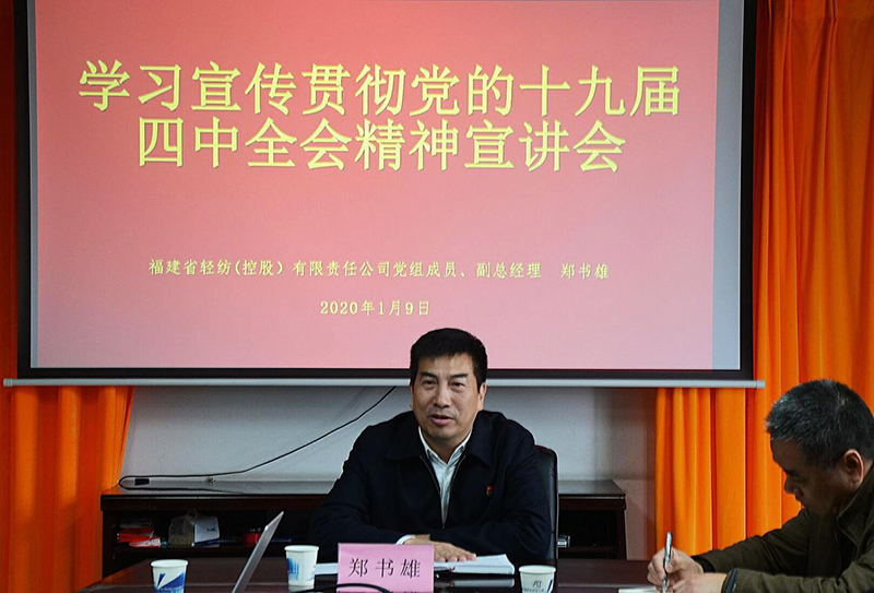 1月9日上午,福建輕紡黨組成員、副總經(jīng)理鄭書雄到省建筑輕紡設(shè)計院作學習宣傳貫徹黨的十九屆四中全會精神宣講。