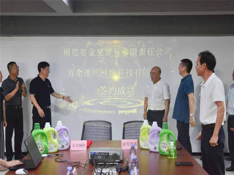 7月13日下午,福建省金皇貿(mào)易有限責(zé)任公司與萬全速配網(wǎng)絡(luò)科技有限公司的戰(zhàn)略合作協(xié)議簽約儀式在萬全網(wǎng)絡(luò)福州總部成功舉辦。