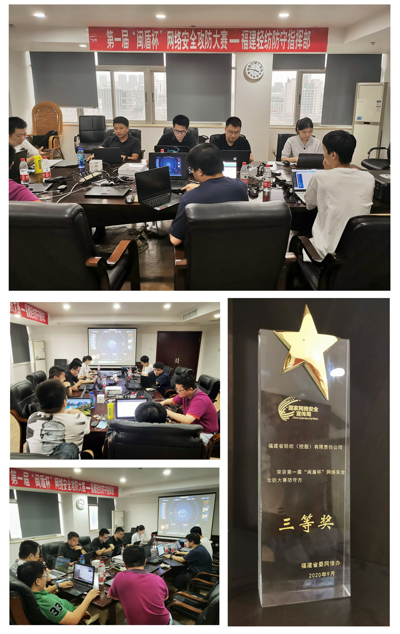 公司領(lǐng)導(dǎo)高度重視本次實戰(zhàn)演練,成立攻防演練工作小組,全面部署演練各項工作。在小組全體成員的共同努力和連續(xù)值守下,演練期間共攔截外部攻擊數(shù)千次,應(yīng)急處理安全事件274次,提交有效防守報告10份,防守加分共計500分,成功保障信息系統(tǒng)未被攻破,順利完成本次攻防演練任務(wù)。經(jīng)過組委會評審,福建輕紡喜獲三等獎,在參賽的國資系統(tǒng)企業(yè)中名列前茅,網(wǎng)絡(luò)安全防護能力得到省委網(wǎng)信辦的認可。