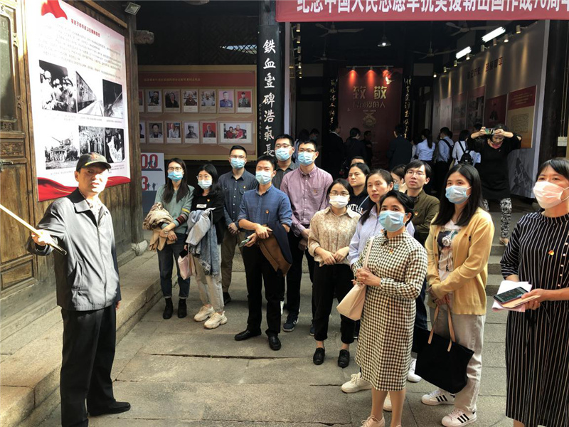 2020年11月5日下午,福建輕紡機(jī)關(guān)第四支部、第五支部及金皇貿(mào)易黨支部聯(lián)合開(kāi)展主題黨日活動(dòng),赴福州市三坊七巷安民巷53號(hào)新四軍駐福州辦事處舊址,參觀“致敬最可愛(ài)的人—紀(jì)念中國(guó)人民志愿軍抗美援朝出國(guó)作戰(zhàn)70周年”圖片展。展覽以圖文并茂的形式,通過(guò)戰(zhàn)略決策、冰雪長(zhǎng)津湖、地下長(zhǎng)城、鋼鐵運(yùn)輸線、粉碎細(xì)菌戰(zhàn)、鮮血凝成的戰(zhàn)斗友誼、偉大的抗美援朝精神七大板塊展現(xiàn)抗美援朝的歷史進(jìn)程,并陳列了珍貴的抗戰(zhàn)文物。原直屬機(jī)關(guān)黨委專職副書(shū)記樓小軍同志作為義務(wù)講解員帶領(lǐng)大家回顧往昔,追憶崢嶸歲月,講述了紅色中國(guó)波瀾壯闊的革命故事,介紹了先烈們舍生忘死,浴血奮戰(zhàn)的英雄事跡。在場(chǎng)的同志們無(wú)不為之動(dòng)容,深刻感受到偉大抗美援朝精神的豐富內(nèi)涵和時(shí)代價(jià)值,紛紛表示要銘記歷史,珍愛(ài)和平,傳承革命精神,更加緊密地團(tuán)結(jié)在以習(xí)近平同志為核心的黨中央周圍,為實(shí)現(xiàn)中華民族偉大復(fù)興的中國(guó)夢(mèng)不懈奮斗。