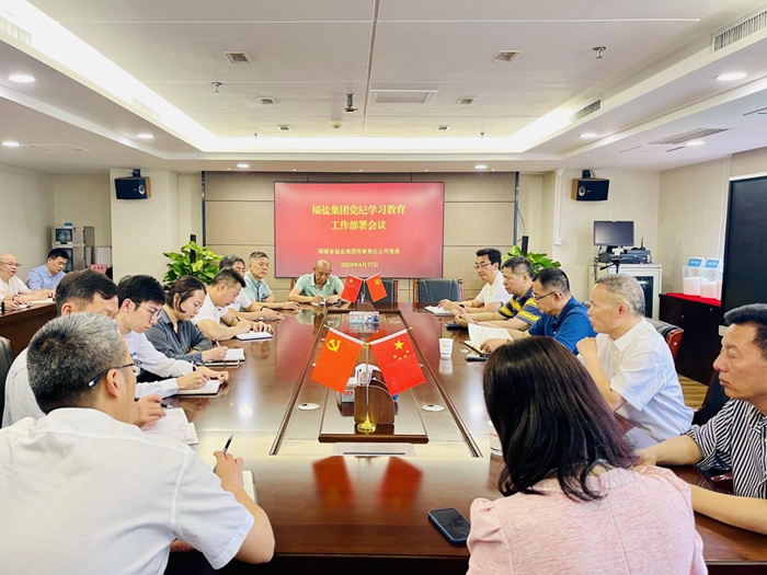 4月17日,福鹽集團召開黨紀學(xué)習(xí)教育工作部署會議,深入學(xué)習(xí)貫徹習(xí)近平總書記關(guān)于黨紀學(xué)習(xí)教育的重要講話和重要指示精神和黨中央《關(guān)于在全黨開展黨紀學(xué)習(xí)教育的通知》精神,落實福建輕紡黨委有關(guān)工作安排,研究部署黨紀學(xué)習(xí)教育工作。福鹽集團黨委書記、董事長林建平主持會議,公司班子成員和中層管理人員、各權(quán)屬企業(yè)負責(zé)人參加會議。
