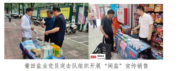 積極發(fā)揮黨建引領,組織黨員突擊隊和服務隊在終端社區(qū)、商超等開展“閩鹽”宣傳營銷活動,向消費者大力推廣“閩鹽”生態(tài)海鹽系列產(chǎn)品及漱口鹽、洗滌鹽等功能鹽產(chǎn)品,以飽滿的工作熱情助力“閩鹽”中高端產(chǎn)品的宣傳銷售。