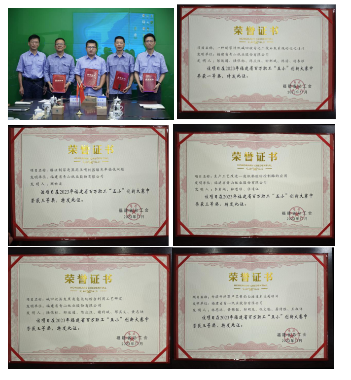 近日,福建省總工會(huì)2023年百萬(wàn)職工“五小”創(chuàng)新大賽優(yōu)秀成果和優(yōu)秀組織單位公布,青山紙業(yè)公司工會(huì)推薦項(xiàng)目喜獲佳績(jī),獲得一等獎(jiǎng)1項(xiàng),三等獎(jiǎng)4項(xiàng)。