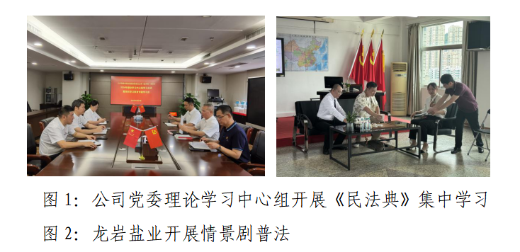 本次普法宣傳活動,公司黨委高度重視,把民法典學習作為黨委理論學習中心組的學習內(nèi)容和學法重點,全系統(tǒng)上下積極響應,認真組織開展學習、交流研討,采取線上線下相結(jié)合的多元化宣傳策略。龍巖鹽業(yè)組織開展“合同那點事”情景劇普法,由福建省司法廳、福建省國資委指導推動,福建電視臺綜合頻道“蒲公英在普法”欄目組現(xiàn)場拍攝錄制。各單位通過張貼民法典宣傳海報、發(fā)放民法典宣傳手冊等各種宣傳物料,依托互聯(lián)網(wǎng)平臺轉(zhuǎn)發(fā)、觀看民法典宣傳視頻等方式,不斷豐富職工學習內(nèi)容和路徑,全方位、多角度地增加普法趣味性,營造出學習、宣貫《民法典》的濃厚氛圍。