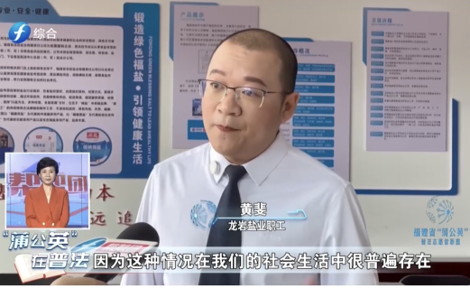 (圖注:“福建電視臺綜合頻道“蒲公英在普法”欄目組”專題報道龍巖鹽業(yè)普法情景劇,龍巖鹽業(yè)職工接受采訪)