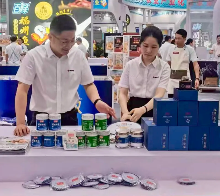 在本屆漁博會上,福鹽集團攜手合作商海欣食品,共同展示了“閩鹽”牌系列產(chǎn)品。福建海鹽作為中國傳統(tǒng)海鹽文化的代表,品質優(yōu)越。不僅富含對人體有益的鉀、鈣、鎂、鋅、硒等數(shù)十種微量元素,而且顆粒晶瑩易溶,口感咸鮮回甘,贏得了現(xiàn)場嘉賓和參展商的一致好評。