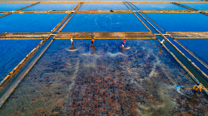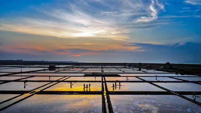 福建海鹽主要產(chǎn)區(qū)正位于北緯25°,緊鄰北回歸線,年均日照時間長、天然形成黃金陽光地帶,是曬制優(yōu)質(zhì)海鹽的理想地帶,占據(jù)全國傳統(tǒng)人工日曬海鹽70%以上產(chǎn)量。為充分利用好這一天然海洋資源,福鹽集團早在上世紀(jì)90年代就將鹽田藻墊應(yīng)用在鹽業(yè)生產(chǎn)上,并在之后的幾十年中,通過生態(tài)修復(fù)、環(huán)境治理等措施,不斷改造升級結(jié)晶池。